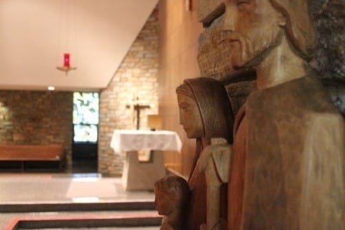 And there she was, Our Lady of Bon Secours. And St. Joseph right next to her. And the Child Jesus between them.