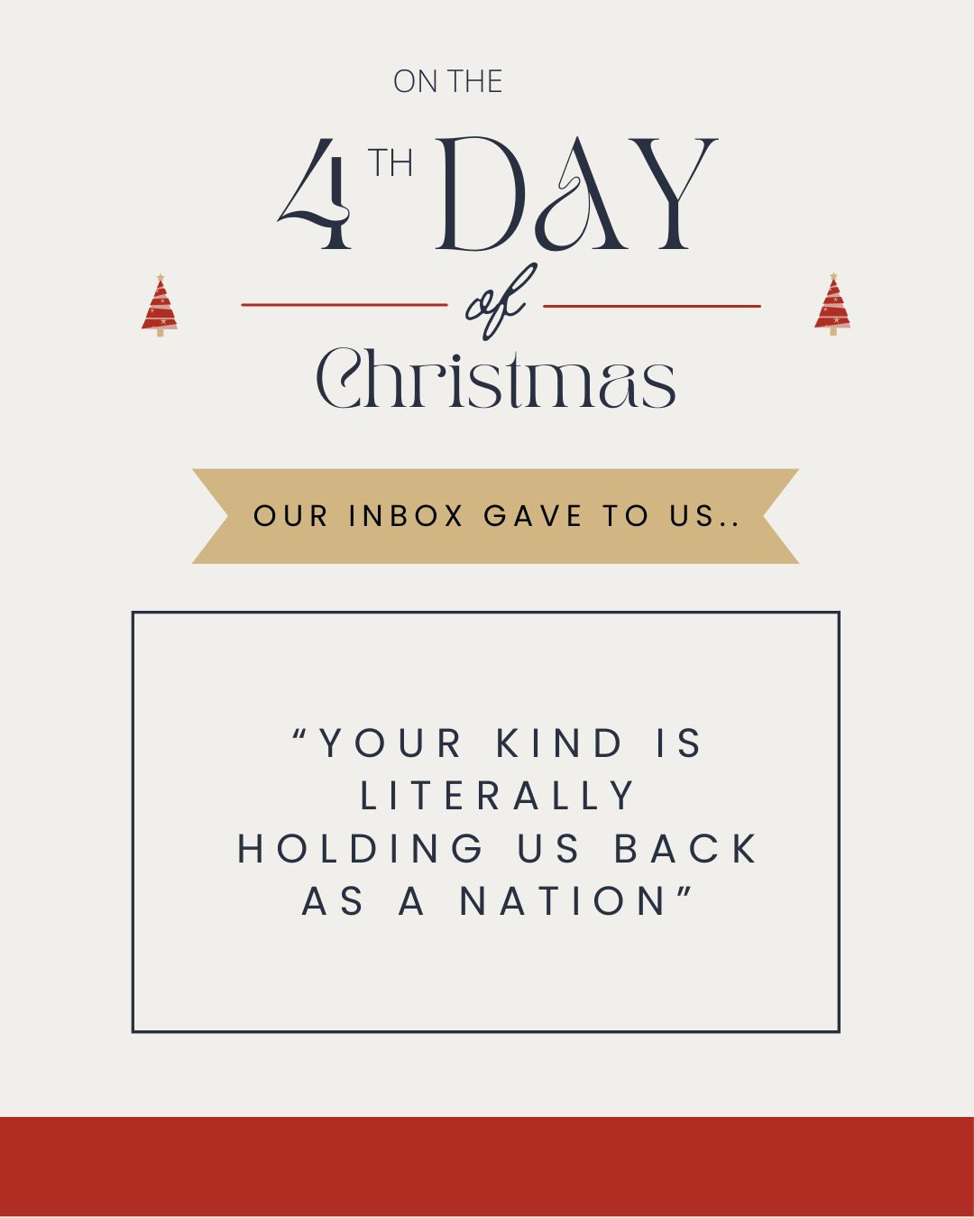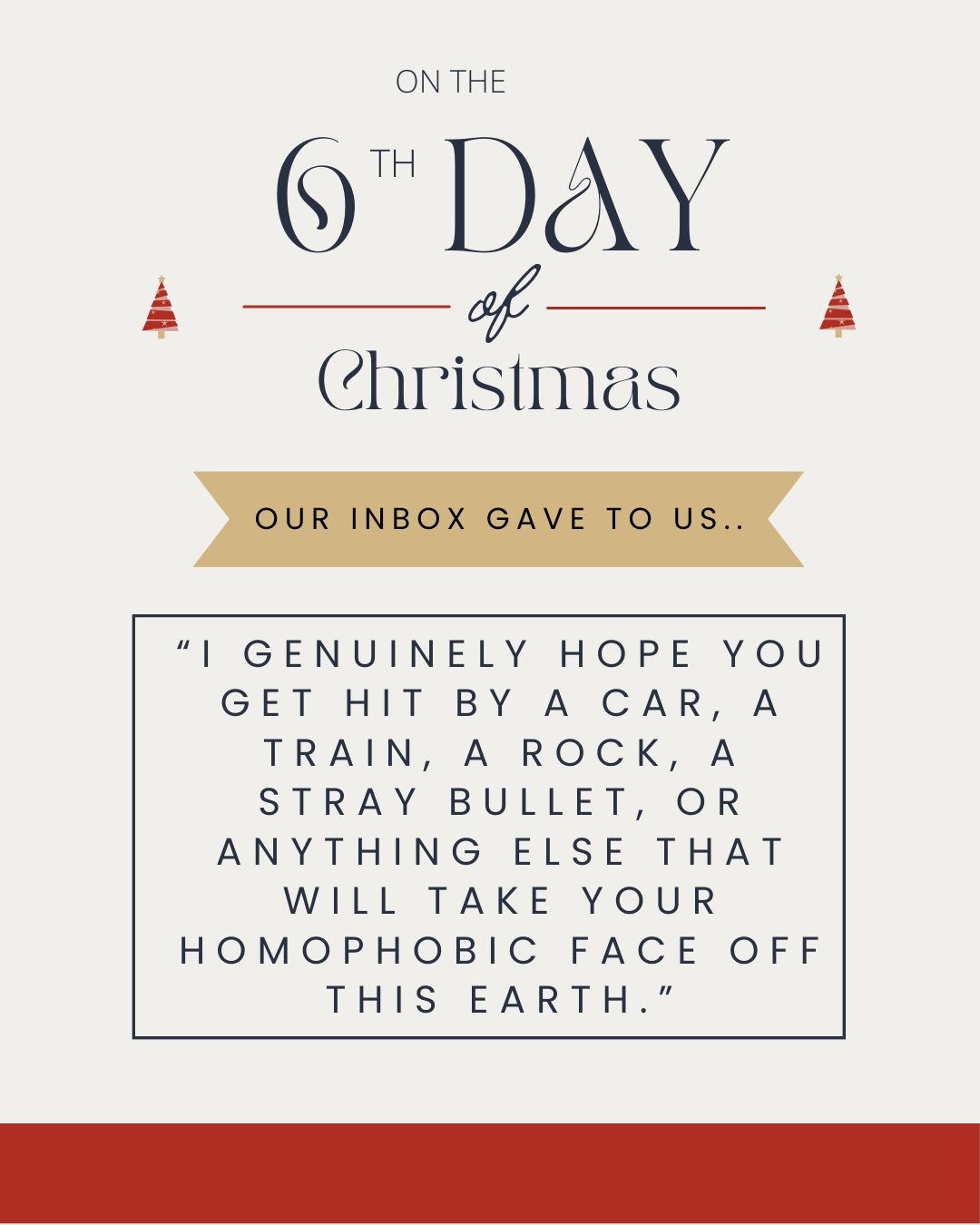 To say the comment section blew up would be an understatement. Two weeks and over 6,600 comments later (hundreds filtered and hidden due to the grotesque, vulgar, and violent nature), we decided to share some of the most thoughtful representations of the anti-children’s rights responses with the 12 Days of Haters.
