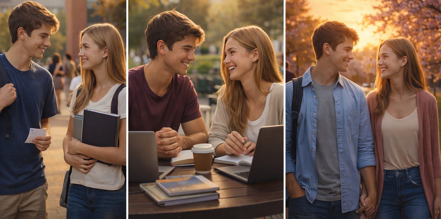 College is one of the few remaining places where young adults have sustained, embodied interaction with the opposite sex — labs, classes, intramurals, campus events, and daily in-person connection.