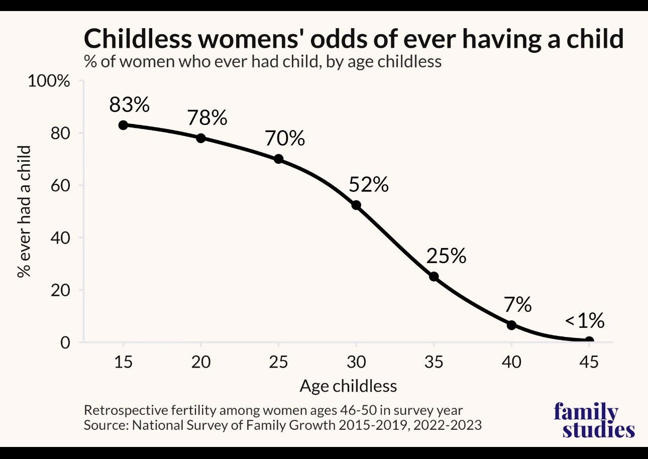 Cultural — and often parental — messaging encourages women to prioritize education, career, and financial comfort during their prime reproductive years. Then, when the window narrows, they may be lured into the child-victimizing #BigFertility industry out of panic and desperation.