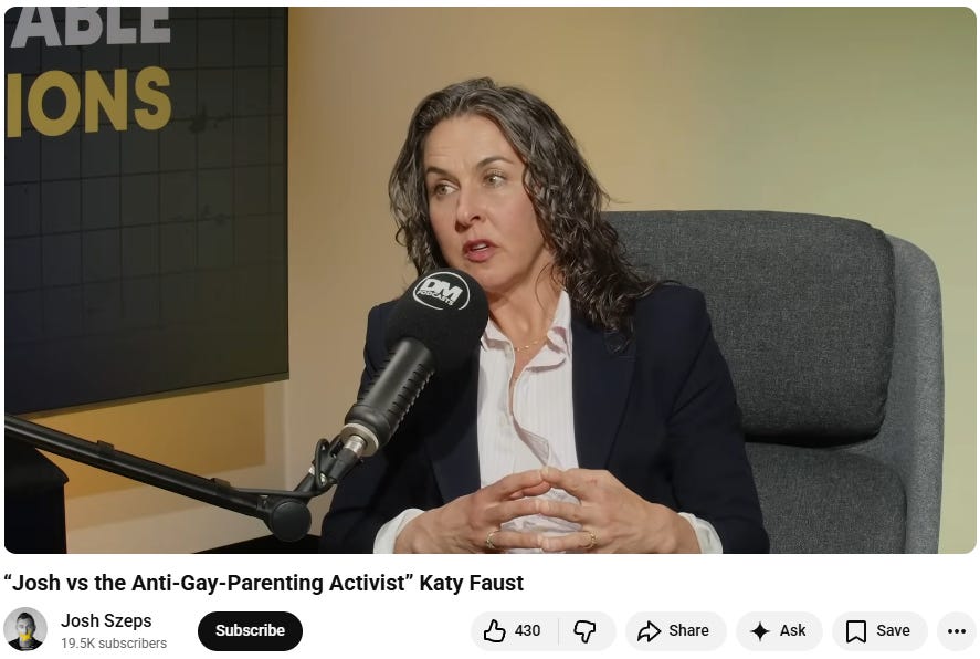 Katy Faust sat down last year with Josh Szeps, an Australian podcaster and a gay man who is married and raising children conceived via egg donation and surrogacy, for what may be the most civil and substantive conversation on this topic you’ll find anywhere. Josh is sharp, well-read, genuinely curious, and he pushes back hard. It’s exactly the kind of conversation your friends and family members are having in their heads when they look at you sideways for caring about children’s rights.